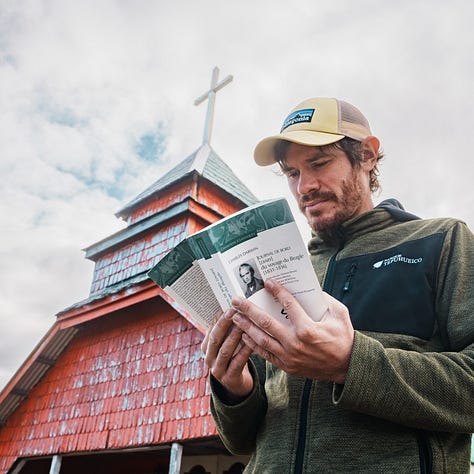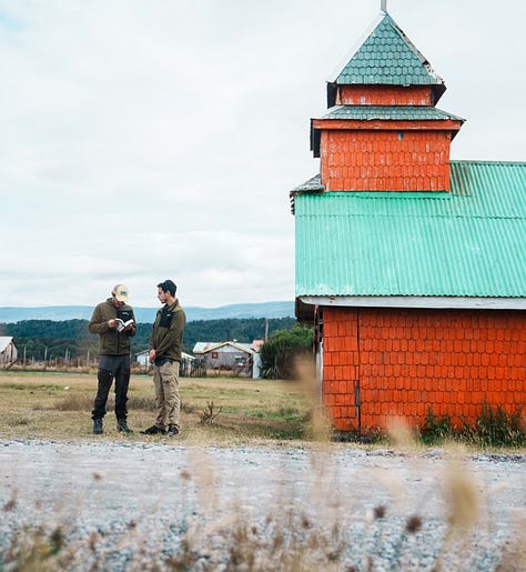 Pronto distingo una pequeña capilla roja. ¿Podría ser esta la “Capilla” a la que él hace referencia? Tal vez. Darwin, King y sus guías cruzan mi mirada: están ocupados en transportar el compás, el sextante y el cronómetro marino del cartógrafo.