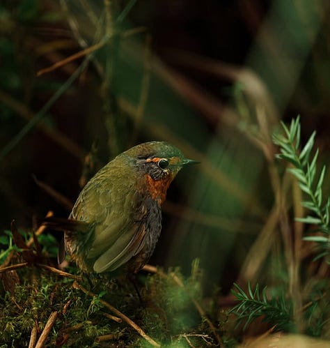 Hoy, el Chucao sigue cantando en Chiloé, aunque el bosque haya sido reemplazado en gran parte por campos y pastizales. En 1834, estos pájaros anunciaban la llegada de Charles Darwin. ¿Qué presagio nos entregarán hoy?