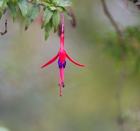 Un poco más adelante, el fucsia de Magallanes, conocido localmente como chilco, es un arbusto de unos 3 metros de altura que exhibe magníficas flores en forma de campanita. Estas flores pueden comerse en primavera y verano: tienen un sabor sorprendentemente dulce.